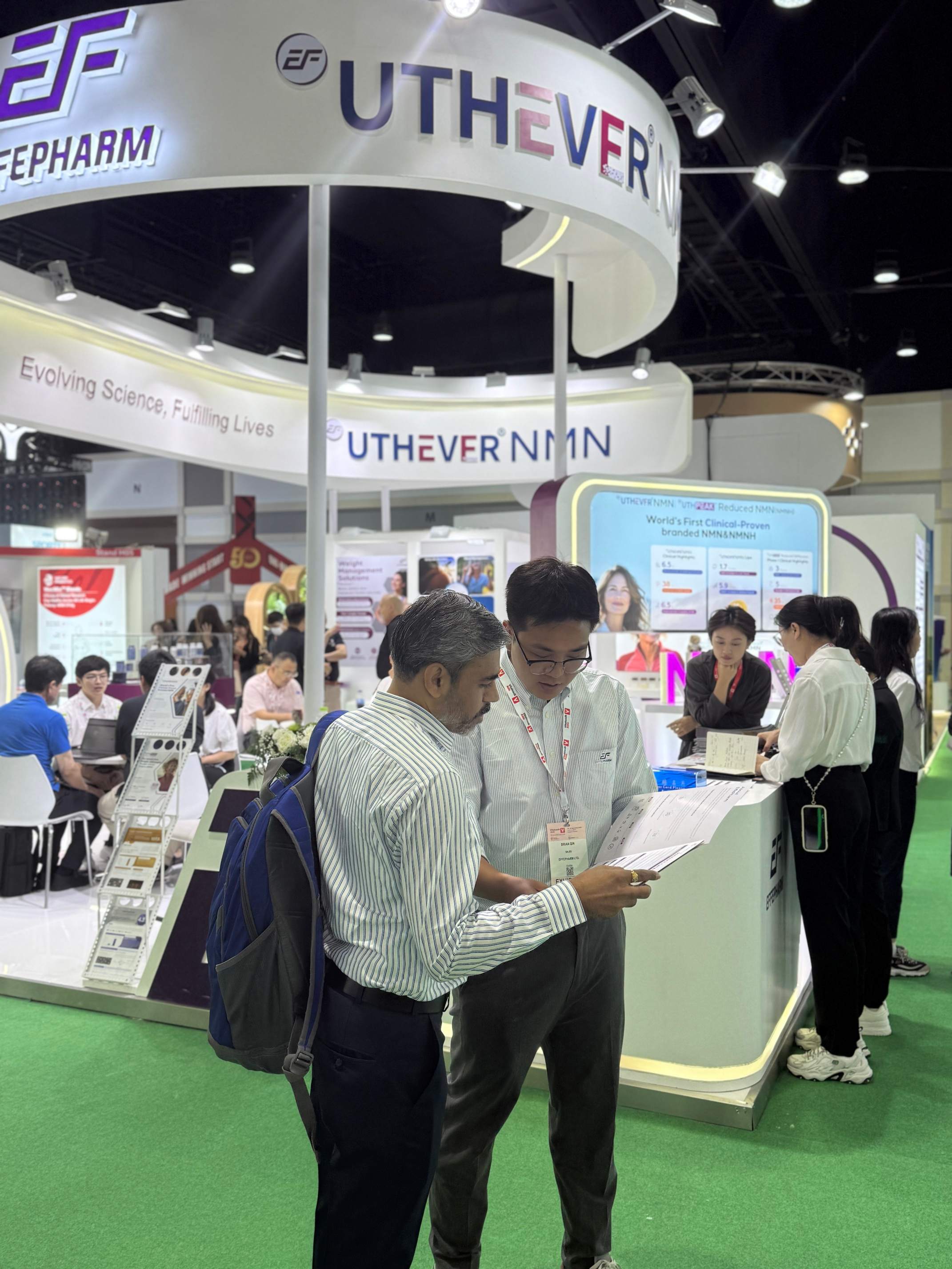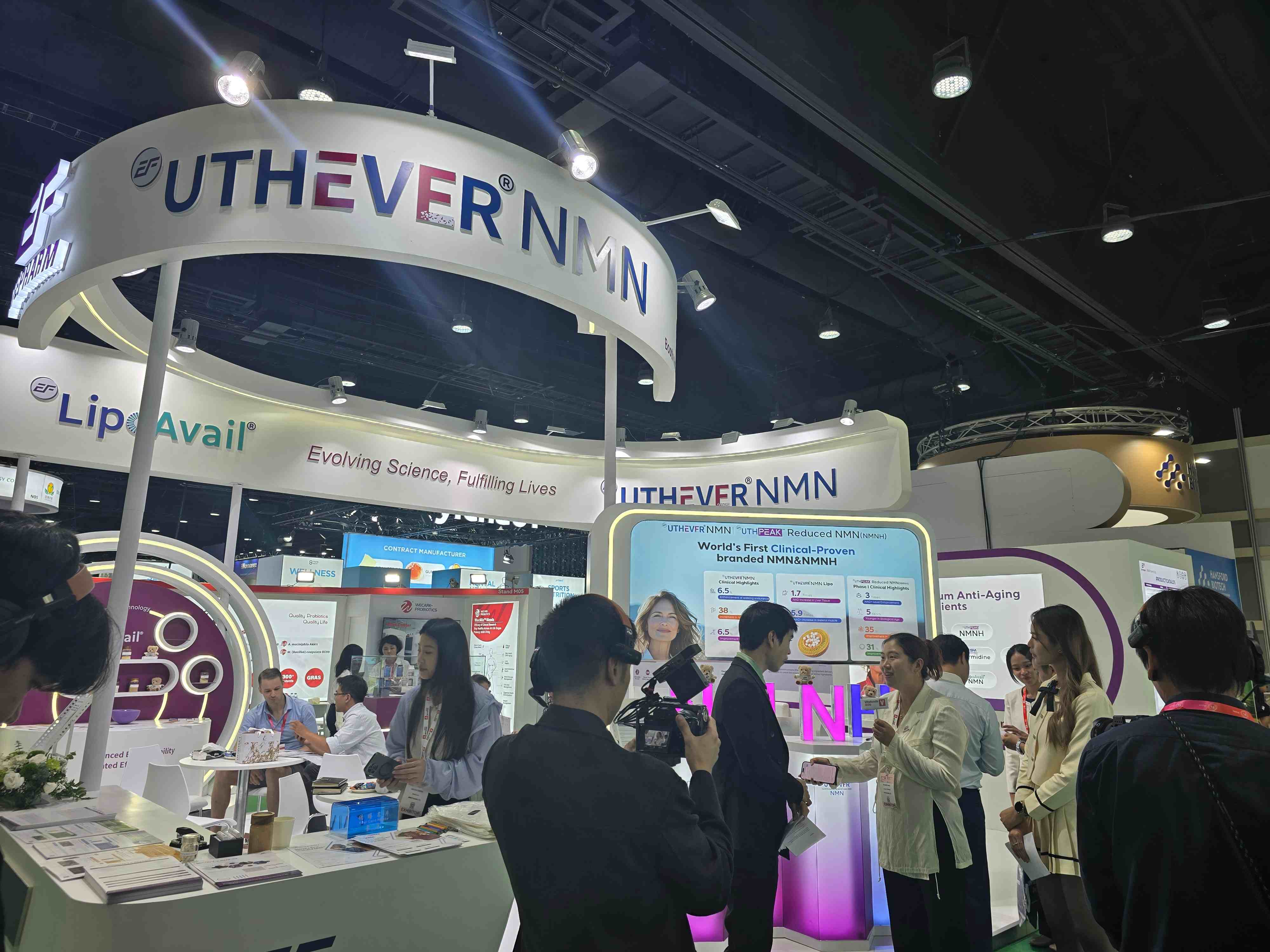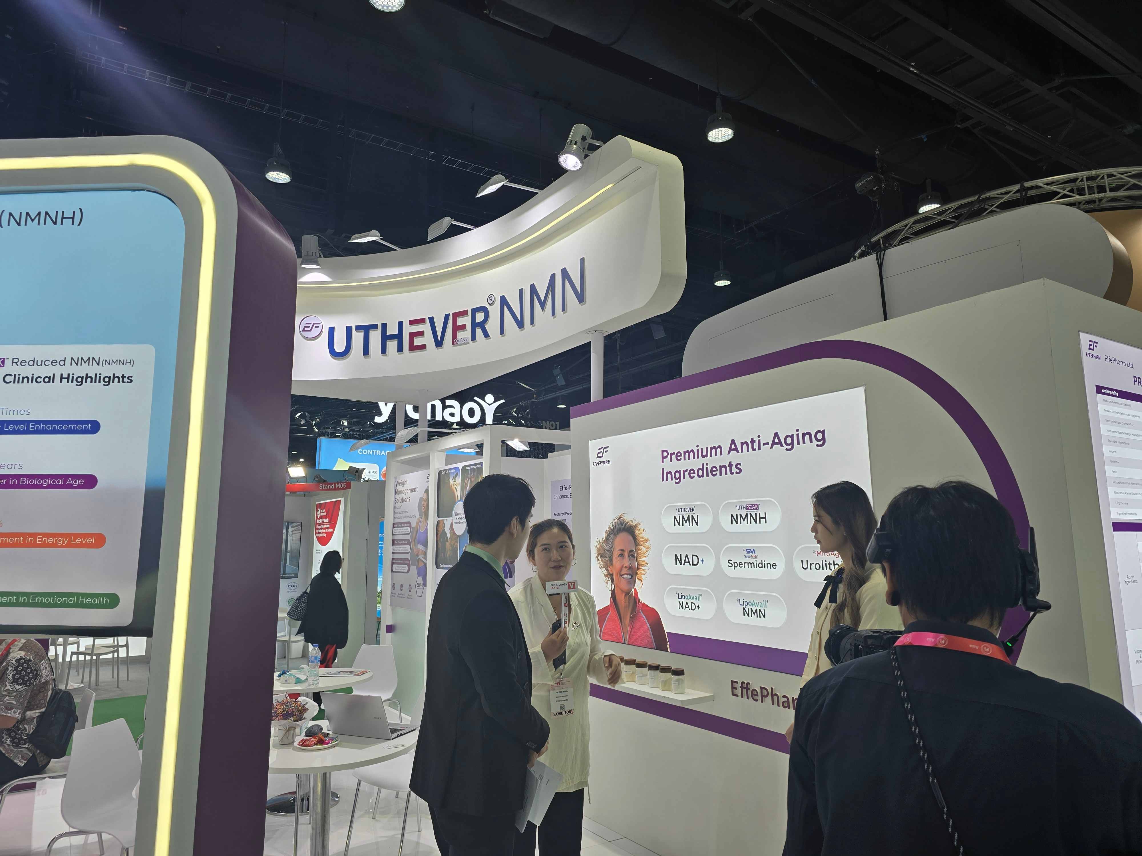2025年9月,泰国曼谷,全球健康营养盛会Vitafoods Asia 2025于日前圆满落幕。此次是音芙医药首次在泰国亮相这一亚太地区重要行业展会。面对区域内日益紧迫的人口老龄化这一核心趋势,我们以“临床实证的抗衰原料”NAD+增强剂系列,Uthever® NMN、UthPeak®NMNH(还原型NMN)以及创新的LipoAvail®脂质体递送技术亮相,彰显了音芙健康衰老与精准营养领域的技术实力与战略布局。