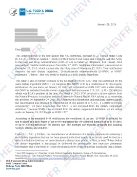 音芙医药旗下Uthever® NMN原料成功通过美国FDA新膳食成分(NDI)预上市通知审查,获得“Letter of No Objection”(无异议函)。这标志着Uthever® NMN在美国膳食补充剂市场的合规准入取得关键突破,为品牌伙伴提供了清晰、安全的法规路径,正式解锁美国主流膳食补充剂市场。