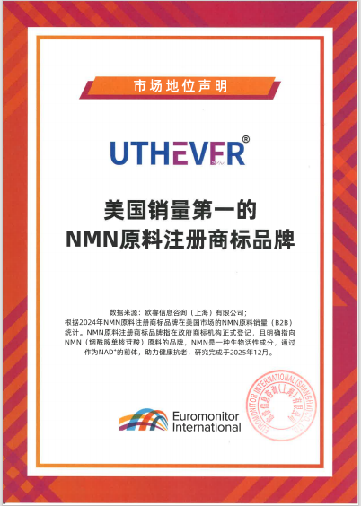 卓越品质、稳定供应、值得信赖的商业价值——这些正是全球超过100个品牌选择Uthever® NMN的核心原因,也共同成就了其美国市场销量第一的行业地位*(数据来源:欧睿国际)。市场的共同选择,是品质最坚实的背书。